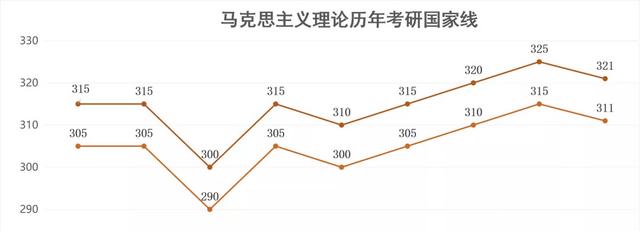 马克思主义理论的国家线是按照法学国家线来划线的,2021年法学的国家线降低了4分,上一次降分还是在2015年。相比其他人文社科类专业来讲,已经是非常低了,过了国家线就意味着可以调剂,这无疑加大了上岸的几率。