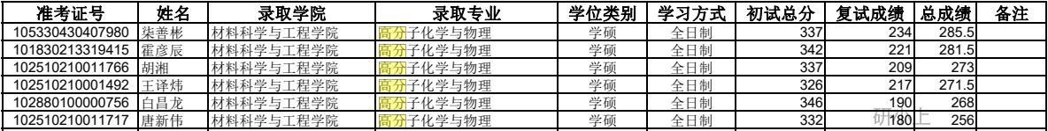 2021年上海大学高分子化学与物理录取31人,最高分382,最低分293。