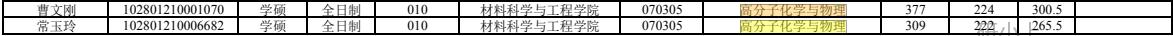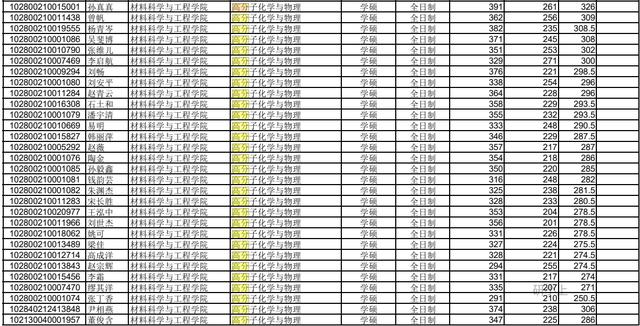 2020年上海大学高分子化学与物理录取36人,最高分391,最低分291。