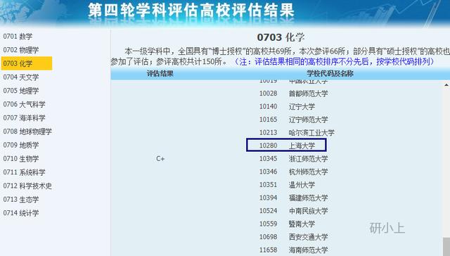 在第四轮教育部学科评估中,上海大学化学学科位列C+。