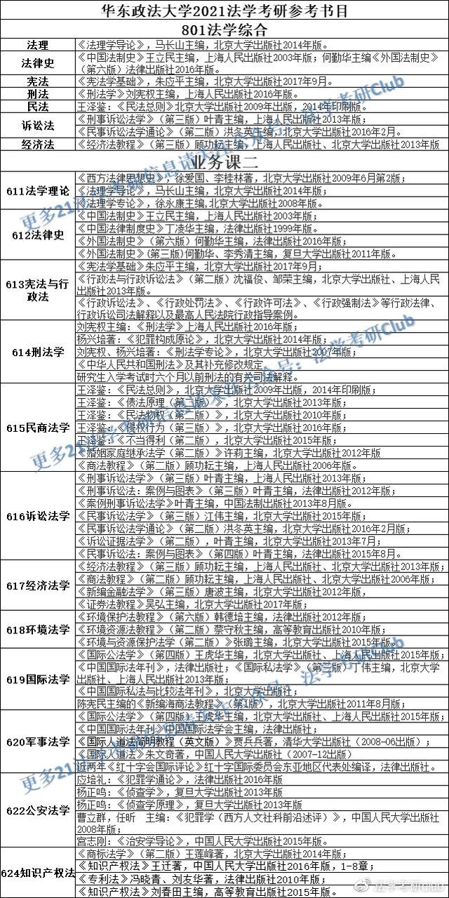 虽然学校不再指定参考书目,但是由于华政本校老师出题,依然会倾向于本校所用教材,因此依然建议大家选择往年的参考书目进行复习: