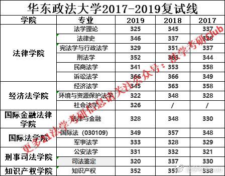 从近三年华政各专业复试分数线可以看出,华政复试线是每个专业单独划线,各专业复试分数线差异较大。民商法、知识产权法、经济法、诉讼法的复试分数线通常高于其他专业复试分数线。值得注意的是华东政法大学的法律史是国家级重点学科,对于有志于从事学术道路又没有特别钟爱的专业的考生来说是个不错的选择