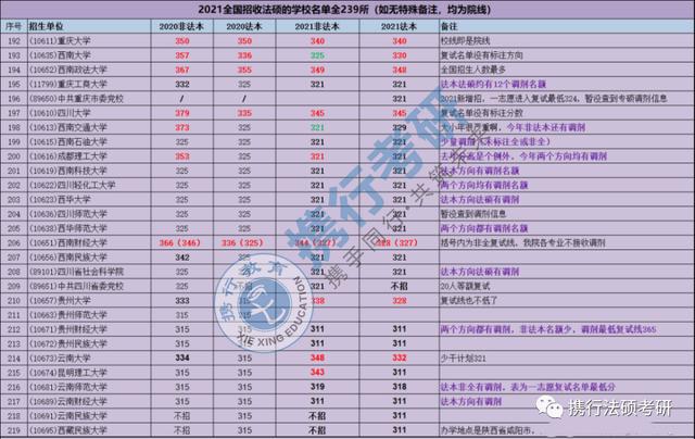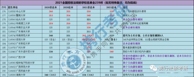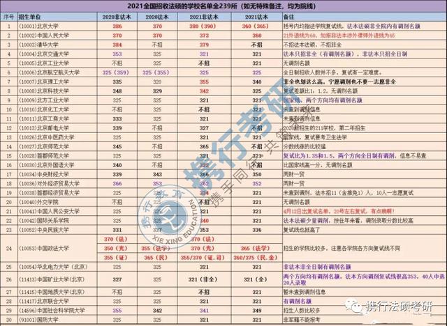 今天为大家带来法硕的院校排名分析和239所法硕院校分数线。