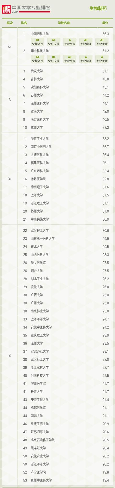 2020年、2021年统计的数据显示,2021年有9所院校新增“生物制药”专业,2020有10所院校新增“生物制药”专业,仅这2年就有19所高校增加了“生物制药”专业。据不完全统计,目前我国开设生物制药专业的院校有53所(2021年生物制药专业高校排名,见文末)。