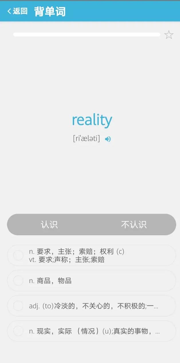 4.记忆模式:“中——英”和“英——中”两种方式复习记忆单词。