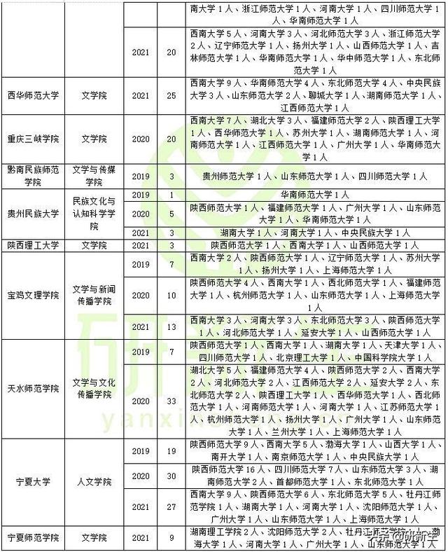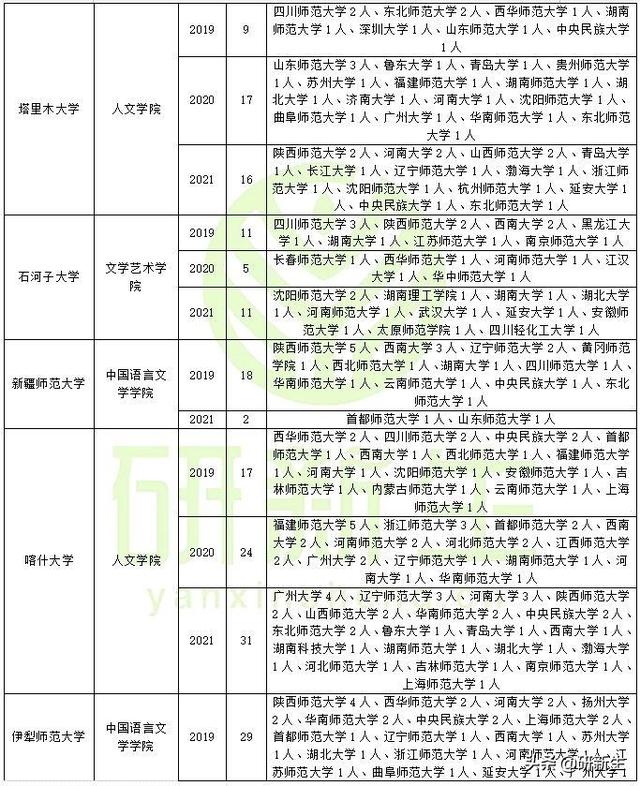 新疆:塔里木大学人文学院、石河子大学文学艺术学院、新疆师范大学中国语言文学学院、喀什大学人文学院、伊犁师范大学中国语言文学学院、昌吉学院(不区分院系所)