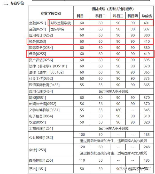人大由于是经管类名校因此经管类专业复试线普遍分数线较高,保险专业复试线达到了419分排在了第一,税务复试线也达到了402分,金融学院的金融复试线为401分,不得不说人大财经真的不是太难了!