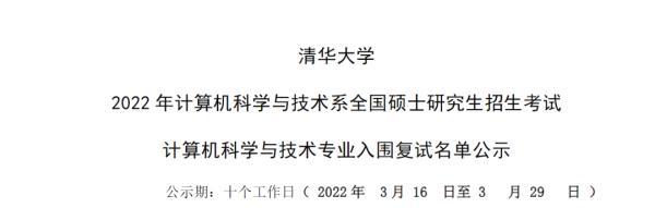 清华大学2022年计算机科学与技术复试名单