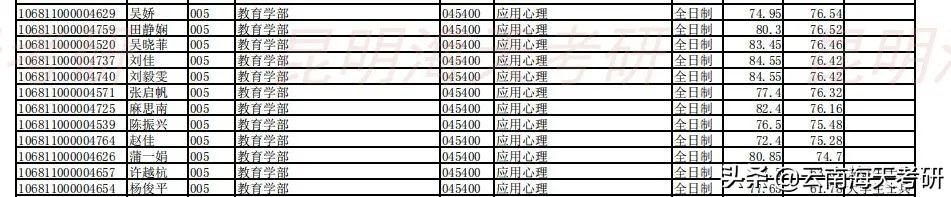 2020年复试线:040201基础心理学是国家线321分;040203应用心理学是330分比国家线高9分;040202 发展与教育心理学是325分,比国家线高4分。