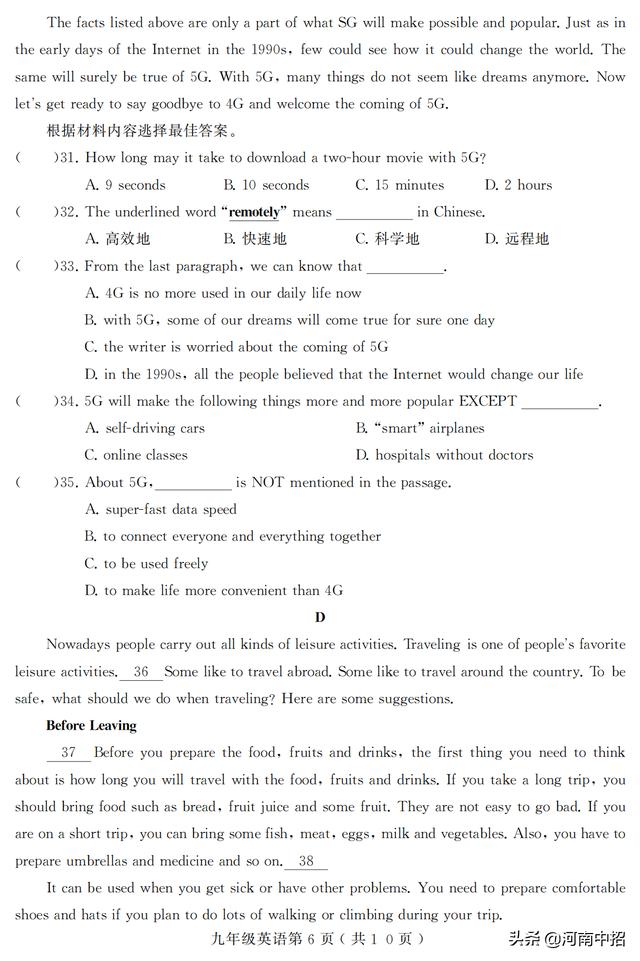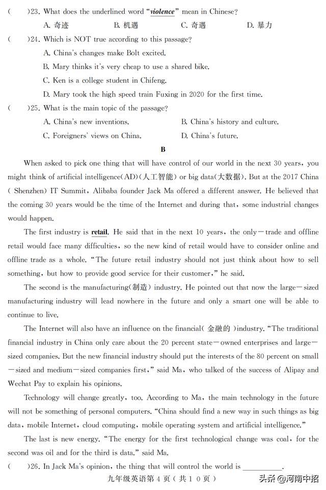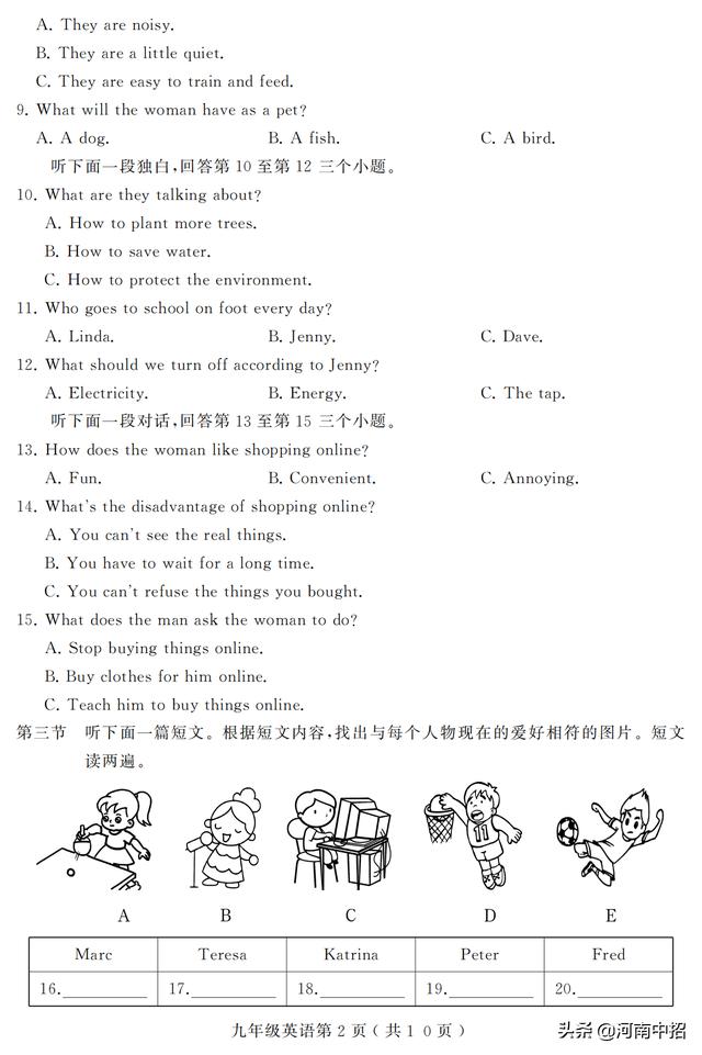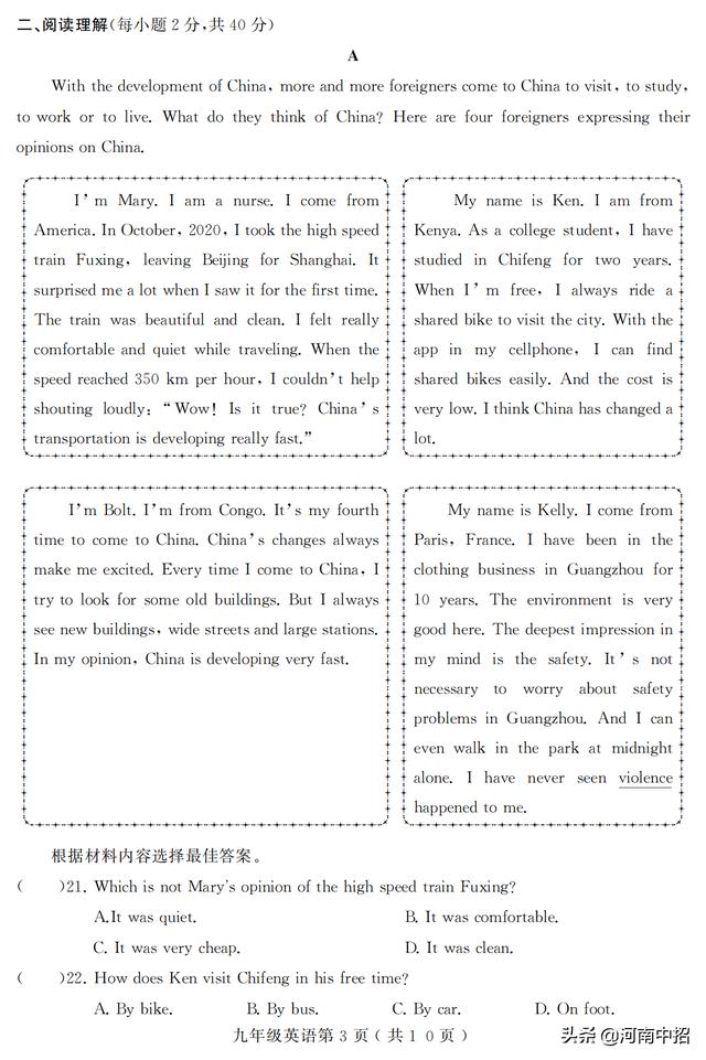 九年级英语试题(九年级英语试题分析及答卷情况)