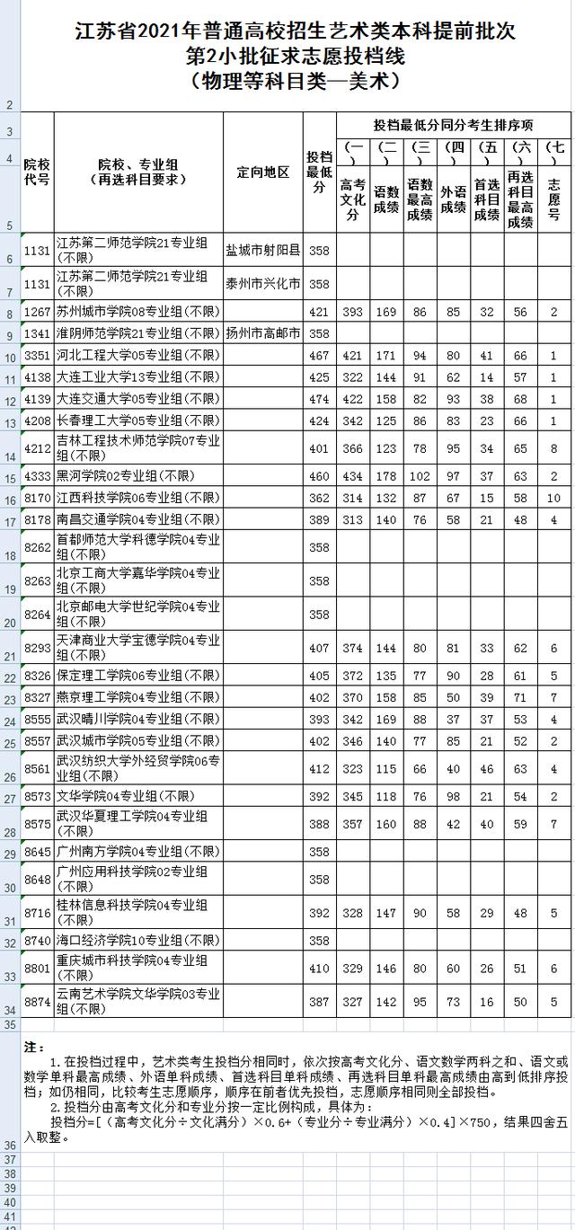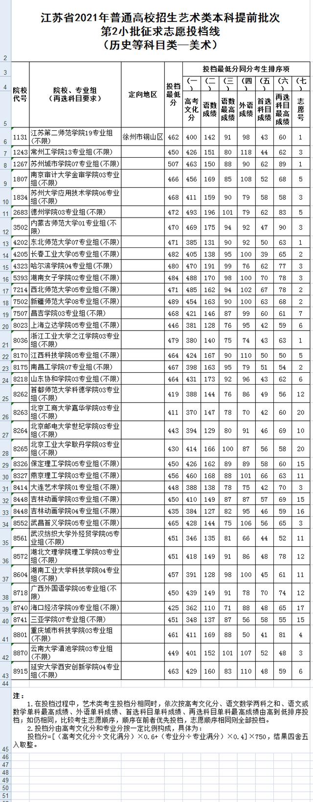为方便大家对2021年艺术类考生录取情况进行了解,我统计了一下2021年艺术类高校本科第二批次的投档分数,并进行了排序,希望能对今年有志于2022年参加艺术类中美术类高考的学生参考。