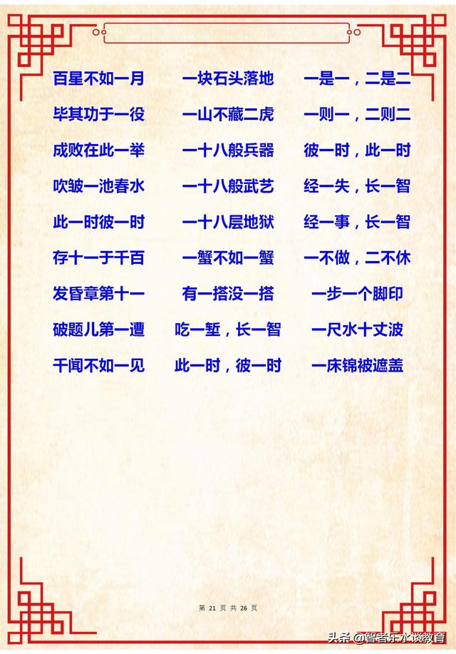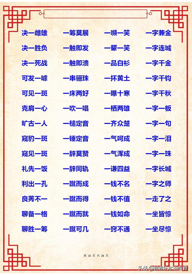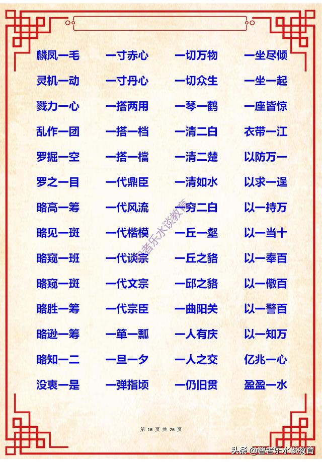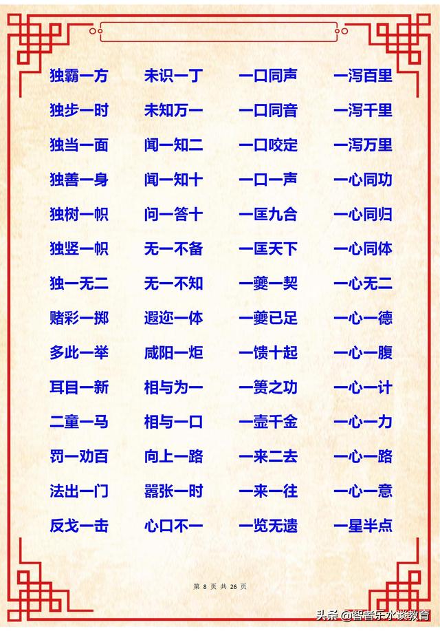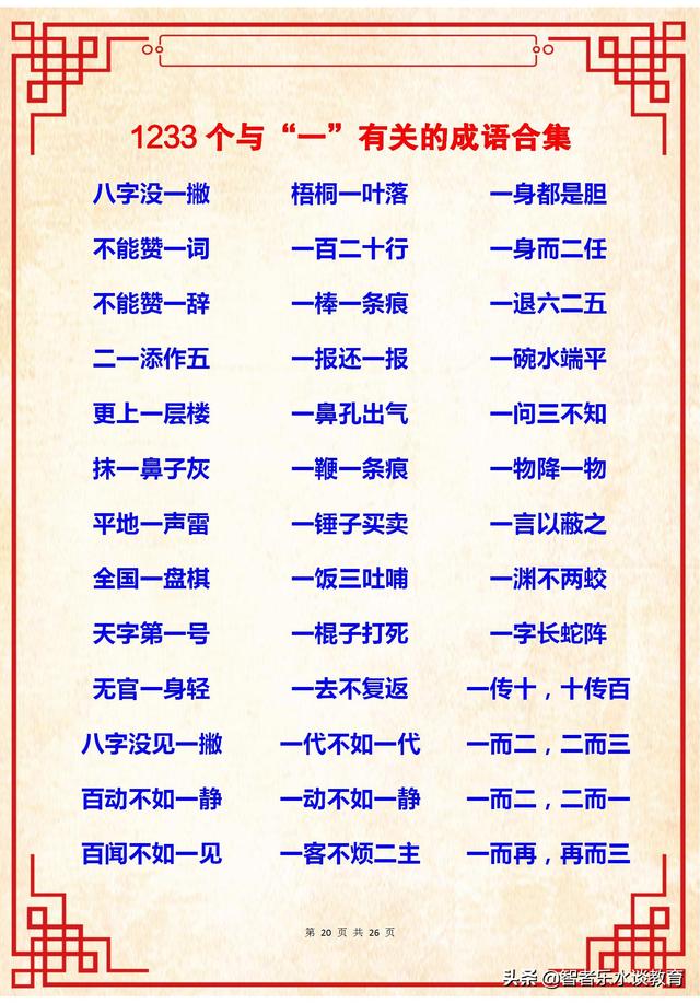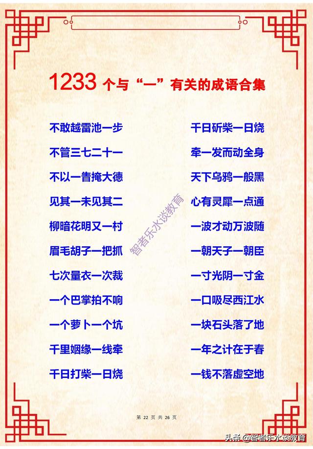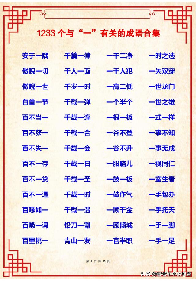 历史上罕见,【1233】个与“一”有关的成语大合集。了解掌握这些成语,出口成章,下笔如有神。#成语##学习资料##中考#这些成语中考、高考以及平时写作文都能用得上,感兴趣者收藏保存。举例: