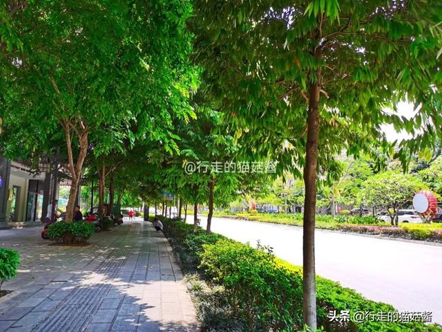 街两旁高大直挺的棕榈树,满满的热带风,就连路上的指示牌、公交站、居民楼的楼顶也都是独特的傣式风格。