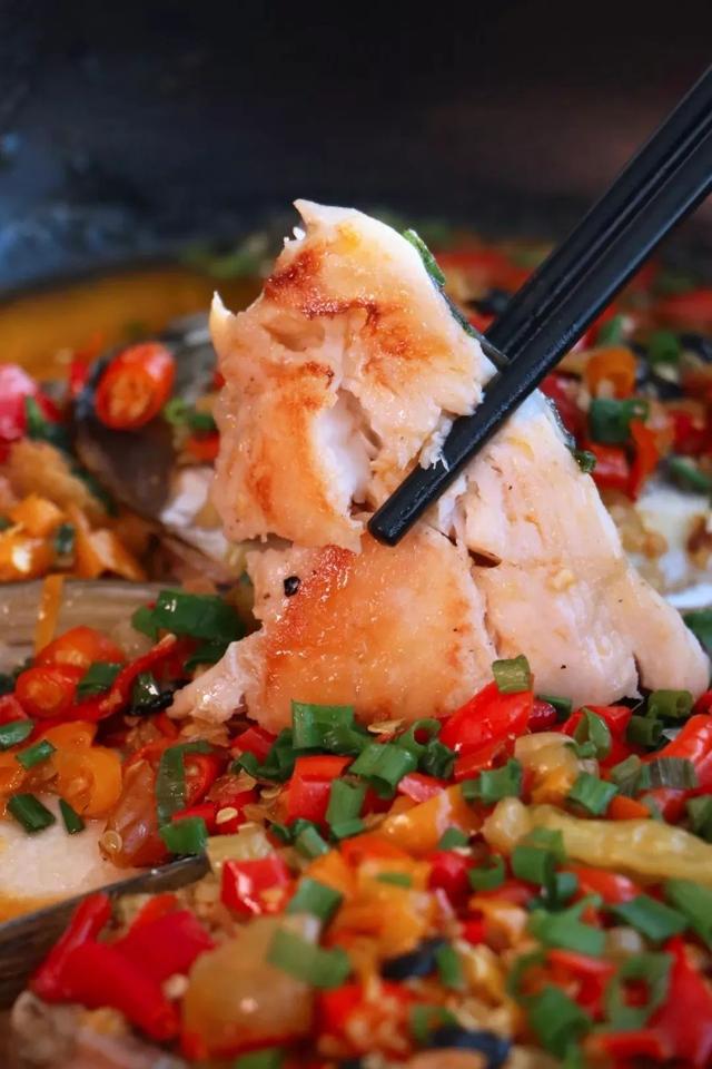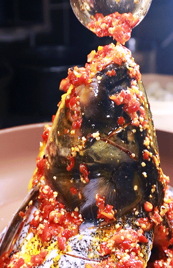 夹起一块鱼肉,饱满紧致、嫩滑绵软,可在几秒过后,剁椒的辣意便从,喉咙漫溢至唇齿,越吃越辣,越吃越香~
