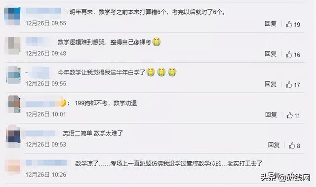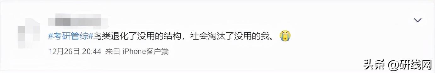 整体而言,管综考试结束后,同学们灵魂顿悟的同时,对论说文的中心思想也进行了延展升华,“鸟类退化了没用的结构,社会淘汰了没用的我”,综合多位老师的预判,今年管综数学难度确实增加了,但阅卷组在管综写作和英二主观题上面可能会给分宽容,会保证整体分数稳定。