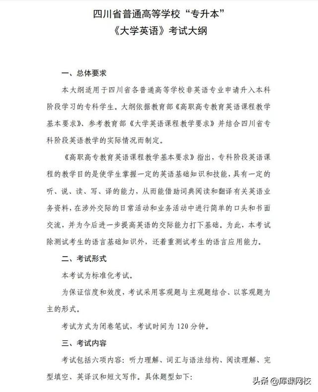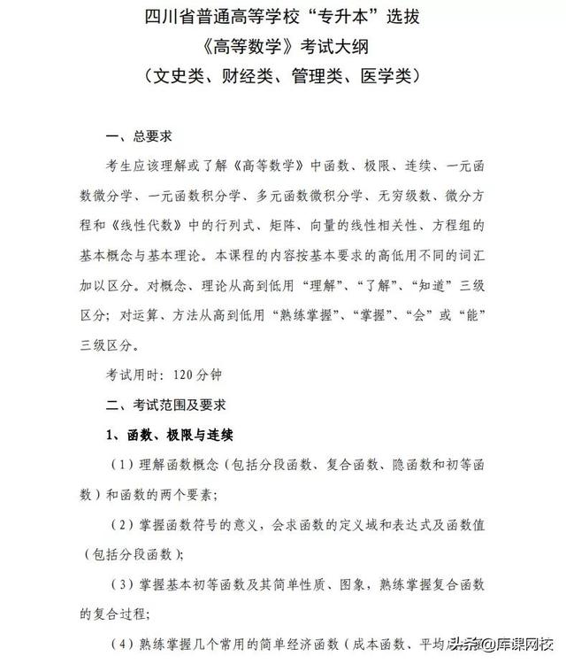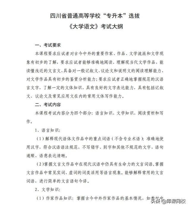 考试大纲参照2009 年制定的《四川省普通高等学校“专升本”基础课考试大纲》执行。