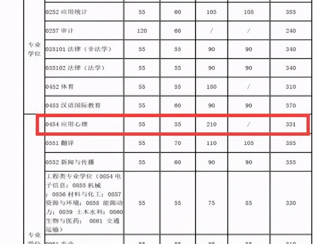 应用心理非全日制:最高分366,最低分337,进复试5人,可调剂