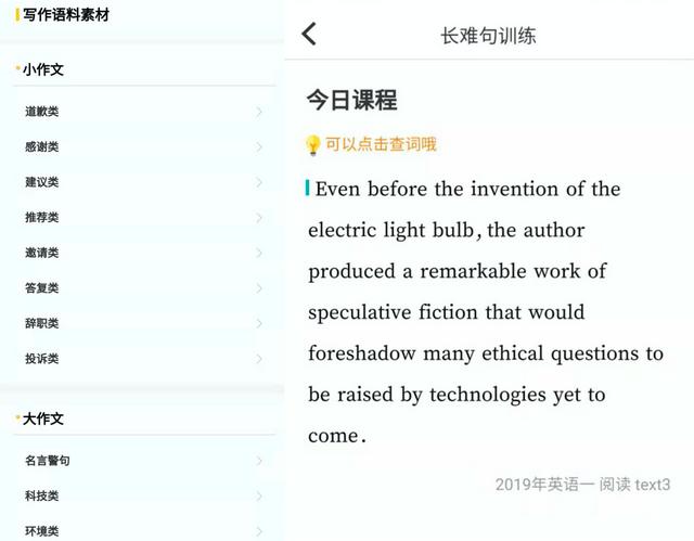 备考时间充足的同学一定要试试扇贝阅读,我自己每天会在扇贝阅读看两篇英文短文,把自己阅读档案设置成为研究生,每天首页会推荐英文短文(分为高中-四级-考研等难度)短文都在200-500词左右,基本上涵盖当下热点、生活、文娱各个方面,阅读一篇时长大概5-10分钟。