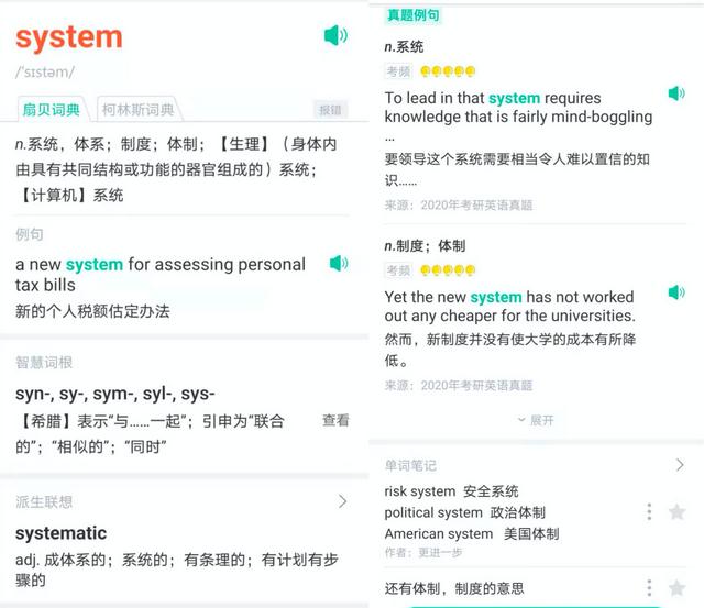 背单词时当一个单词跳出来,如果第一反应0.5秒内没有想起来单词的意思就是自己没有掌握,一定要点【提示一下】让自己的大脑尽量回忆出来,不要因为偷懒跳过这个步骤。在遇到自己不熟悉的单词点击屏幕看详细的解析,在释义界面可以看到每个单词的考频,重点会看考研真题例句,把单词放到例句语境中记忆会更加深刻。