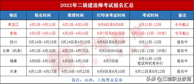 2022年各省二级建造师考试报名工作(除上海、山西外)均已发布报名通知,且大部分省份报名已结束;