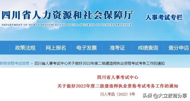 四川省人事考试中心发布关于做好2022年度二级建造师执业资格考试考务工作的通知,确认四川省2022年二级建造师考试报名时间为3月14日至4月13日,相关信息大立教育小编整理如下:
