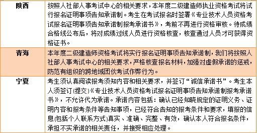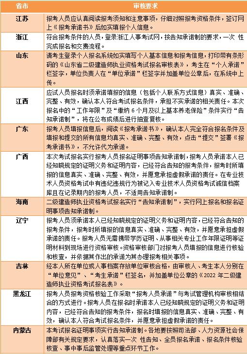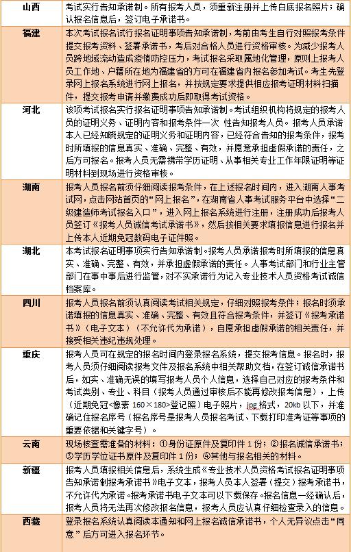 从2021年开始,河北、陕西、江西、上海、广东、浙江、湖北、湖南、福建、青海、四川、西藏、海南、安徽、广西、河南、辽宁、重庆、新疆、内蒙古、宁夏等地二建报名开始实行“告知承诺制”,考生可选择报考承诺制进行报考,2022年预计将有更多地区实行告知承诺制。
