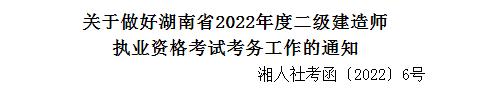 湖南省人事考试网发布《关于做好湖南省2022年度二级建造师执业资格考试考务工作的通知》,摘要如下:
