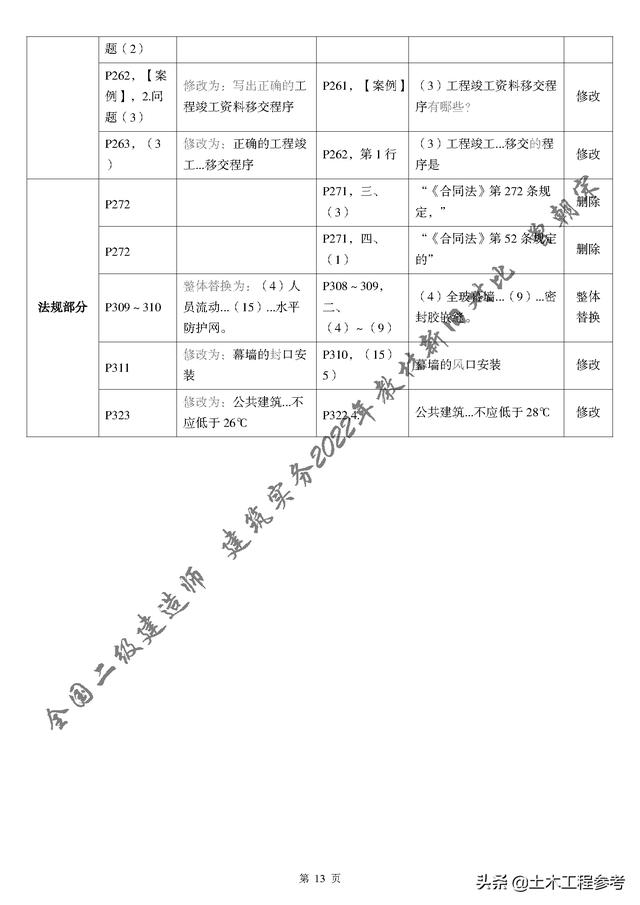 总体来说呢,2022年新教材变动较大的其实只有三处:砌体结构、钢结构通用技术要求、幕墙规范要求,其实的基本上是对个别字词句的逻辑修正或删减,对考试影响较小。