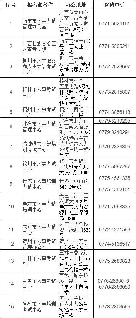全区网上资格审核时间:2020年7月16日至7月28日下午17:00(休息日除外),各报名点名称、地址及联系方式如下: