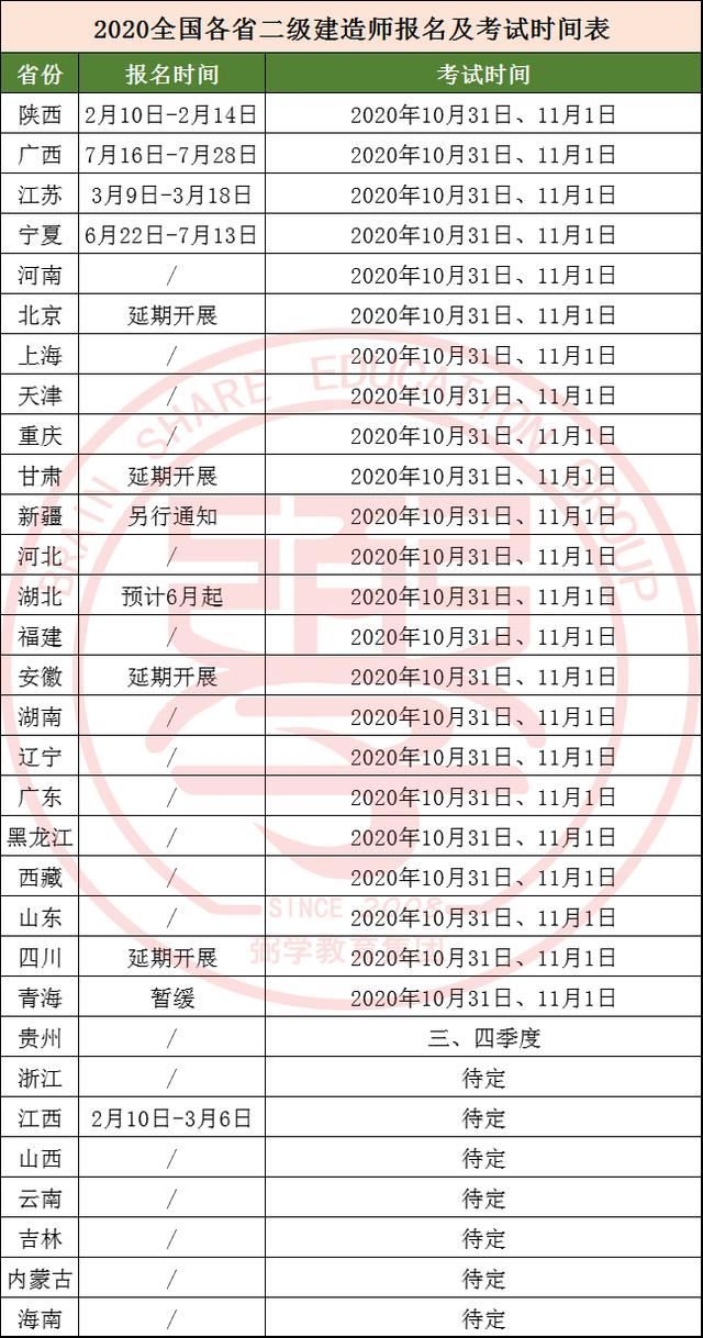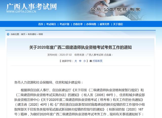 期盼已久的二建考试报名时间终于公布了!7月2日,广西人事考试网发布《关于2020年度广西二级建造师执业资格考试考务工作的通知》,通知明确了广西2020年二级建造师考试时间及各项报考须知。