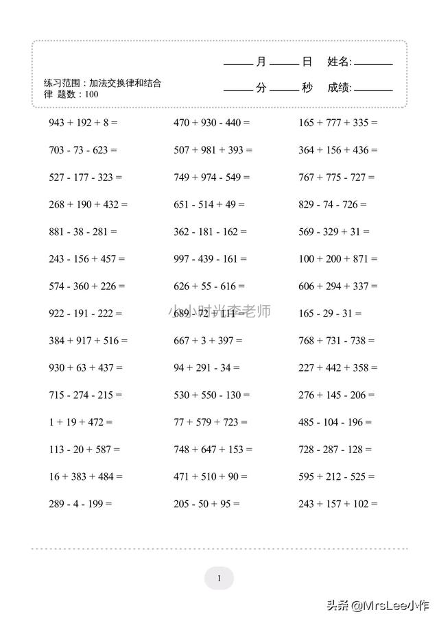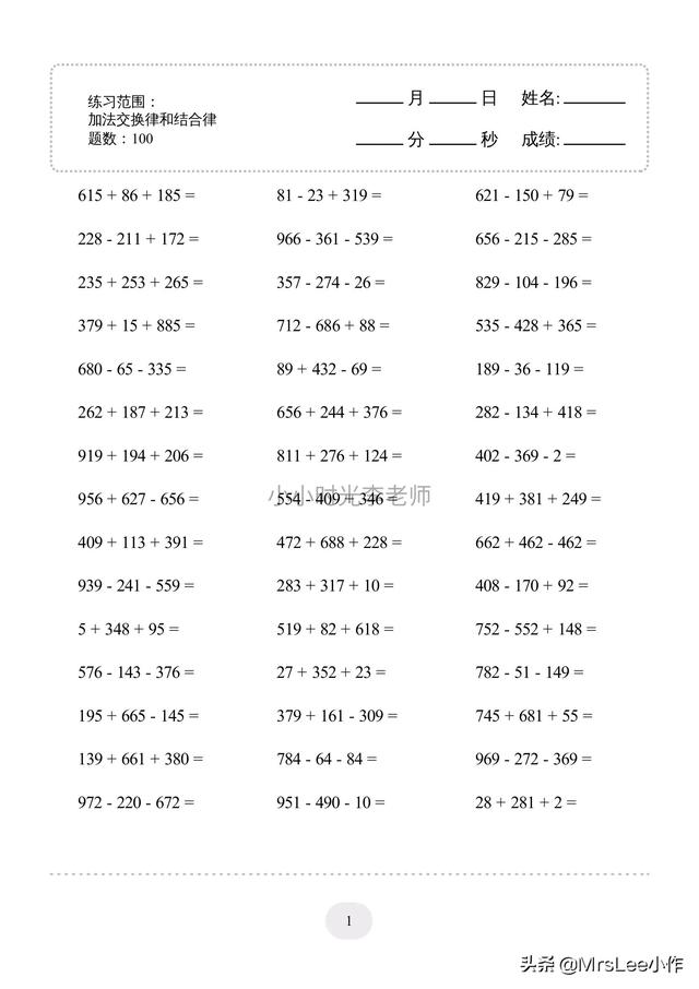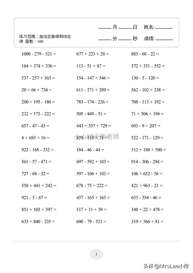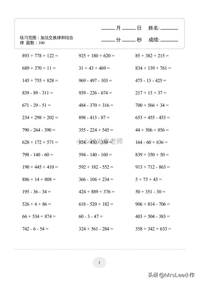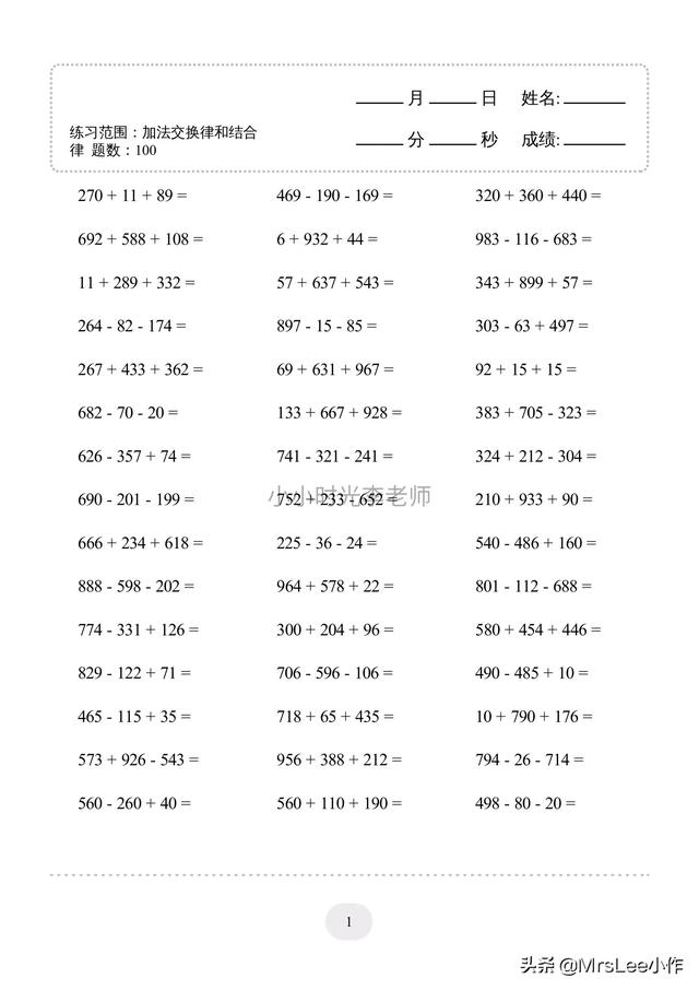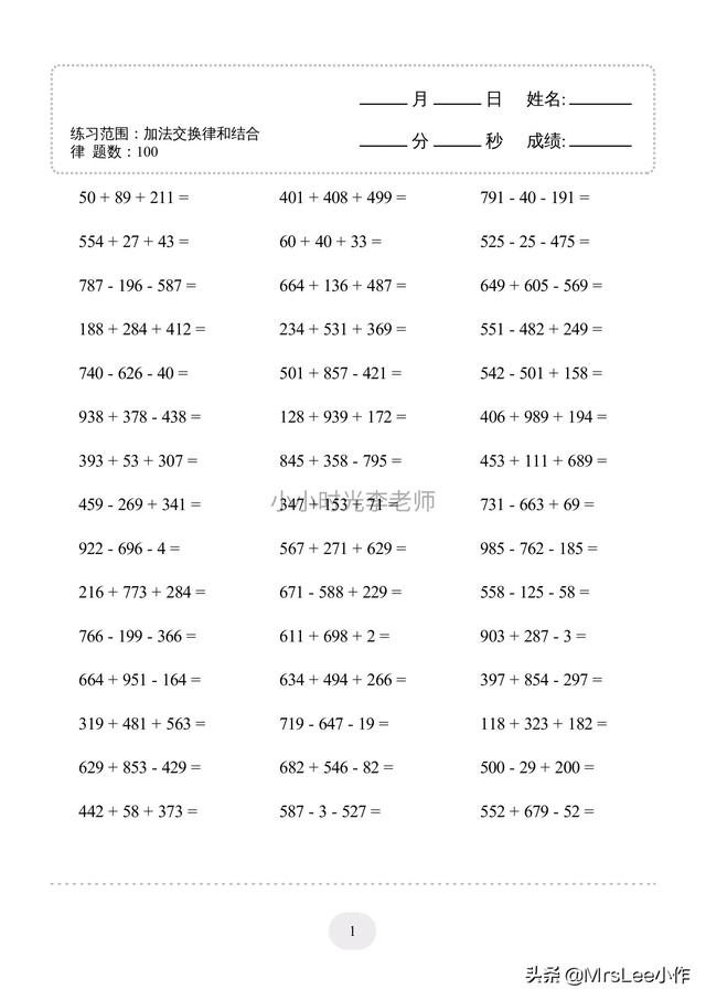 四年级下册数学题100道计算题(四年级下册数学题100道计算题混合运算)