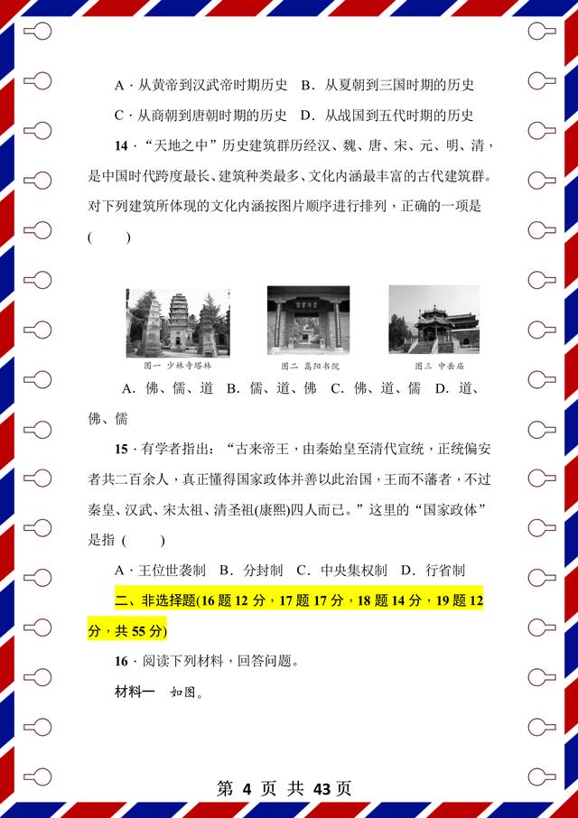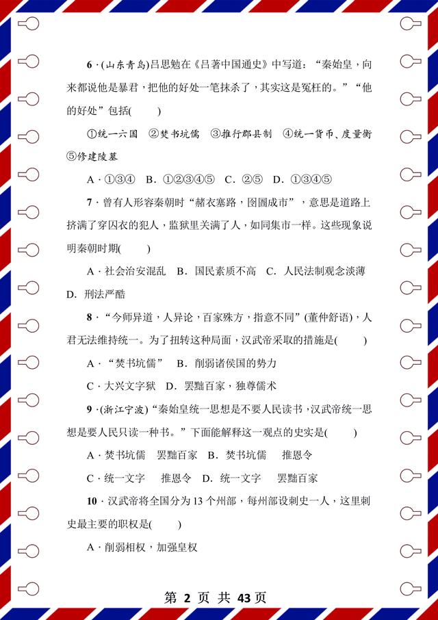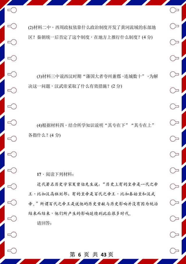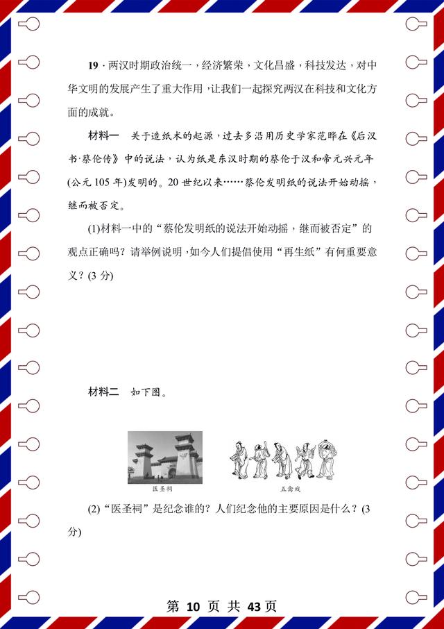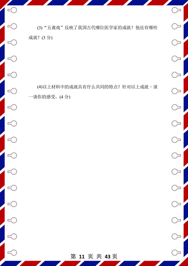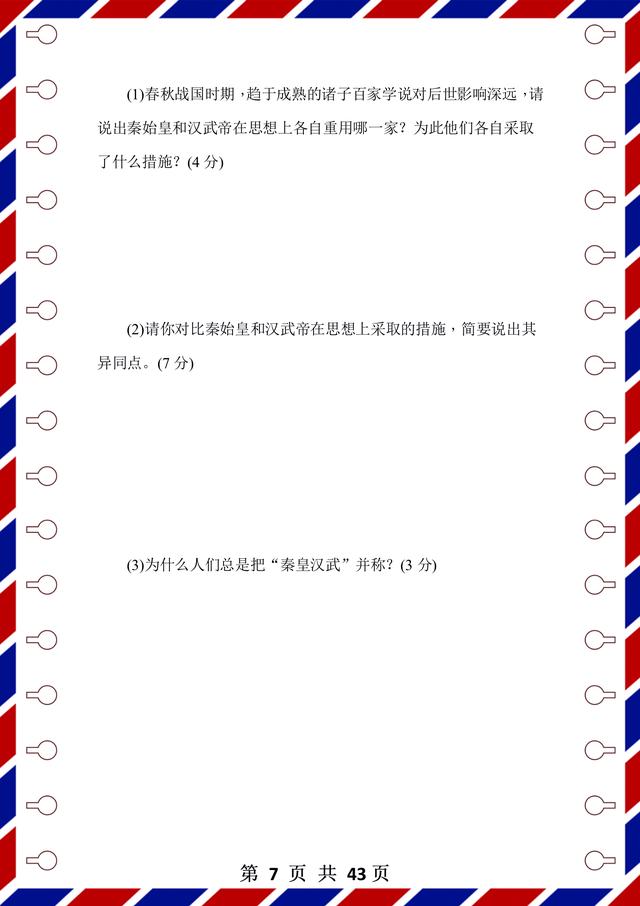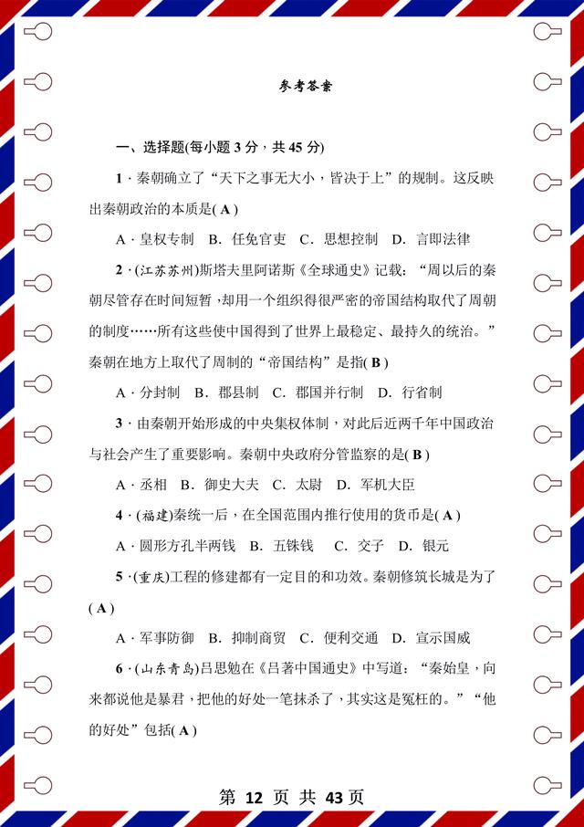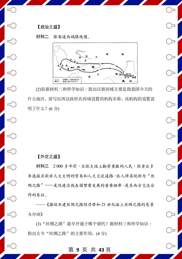 整理了43页!前面是测试题,后面是答案解析,试卷是用word整理的,方便编辑和整理。每张试卷呢,都有匹配的考试时间和要求,可以抽时间让孩子检测,通关以后,孩子的历史成绩不会低!