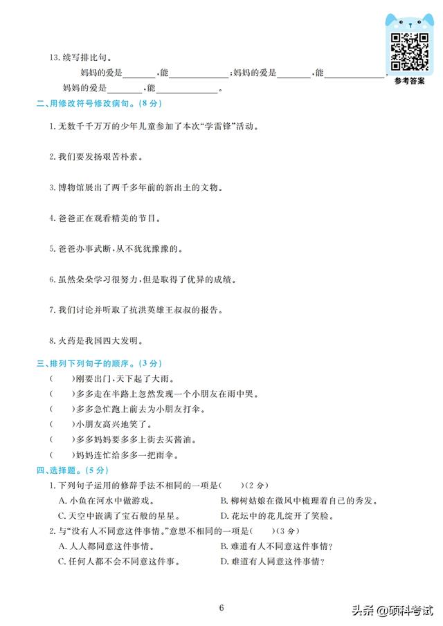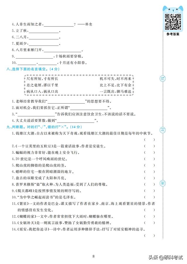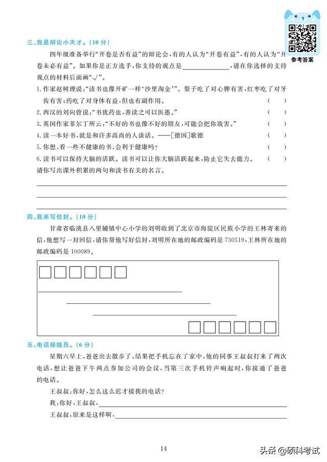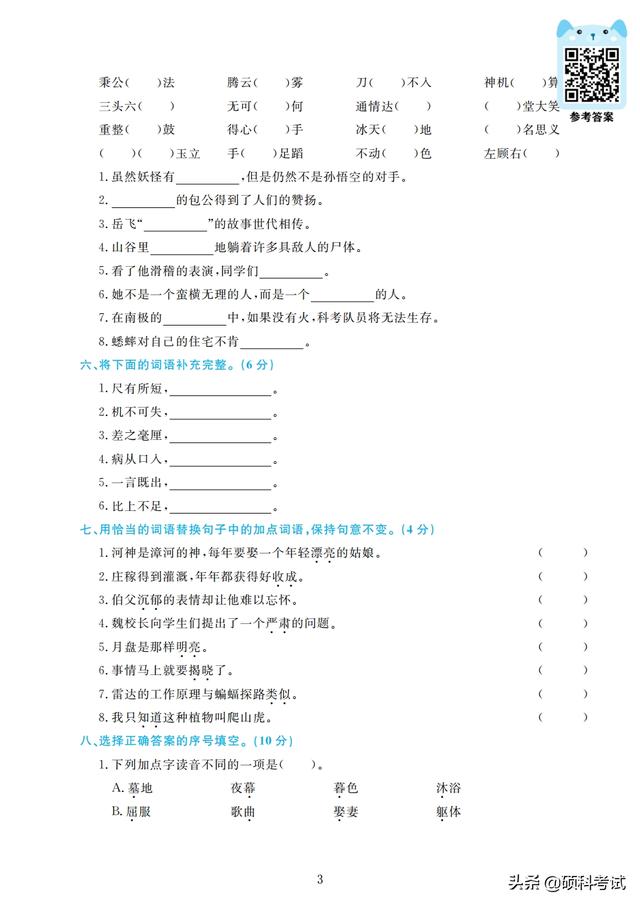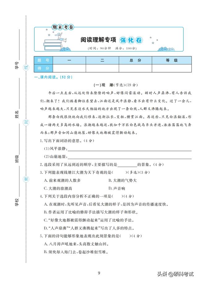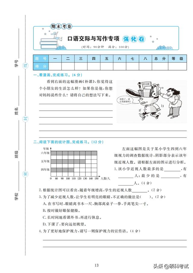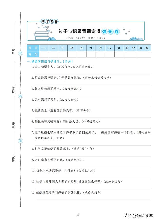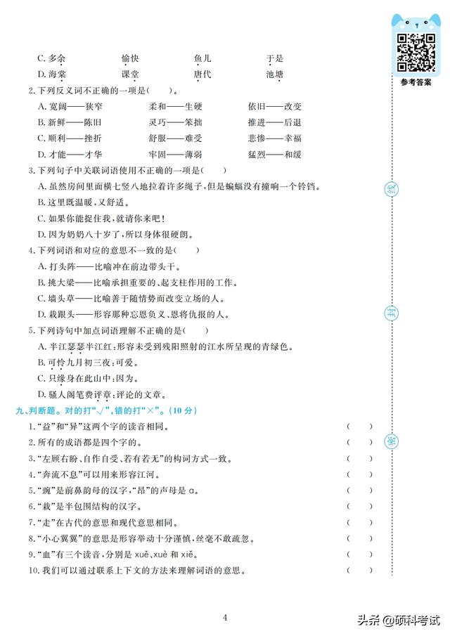 四年级期末试卷(小学语文四年级期末试卷) 四年级的孩子正处于向青少年过渡的儿童期的后期阶段,大脑发育正好处在内部结构和功能迅速发展和完善的关键期,孩子的学习能力和情感能力快速发展,是培养学习能力和情感能力的重要时期。 接下来老师整理好了,部编版四年级上册语文:字、词、句、阅读训练、作文,专项测试精品卷(4套,附答案)检查孩子四年级上学期的学习情况,收藏好!