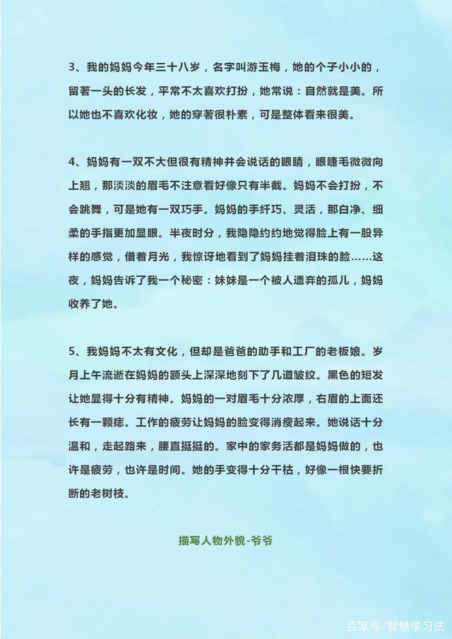 所以老师就给大家分享一些描写人物的好词好句好段,运用在写作中,考试写作拿高分。