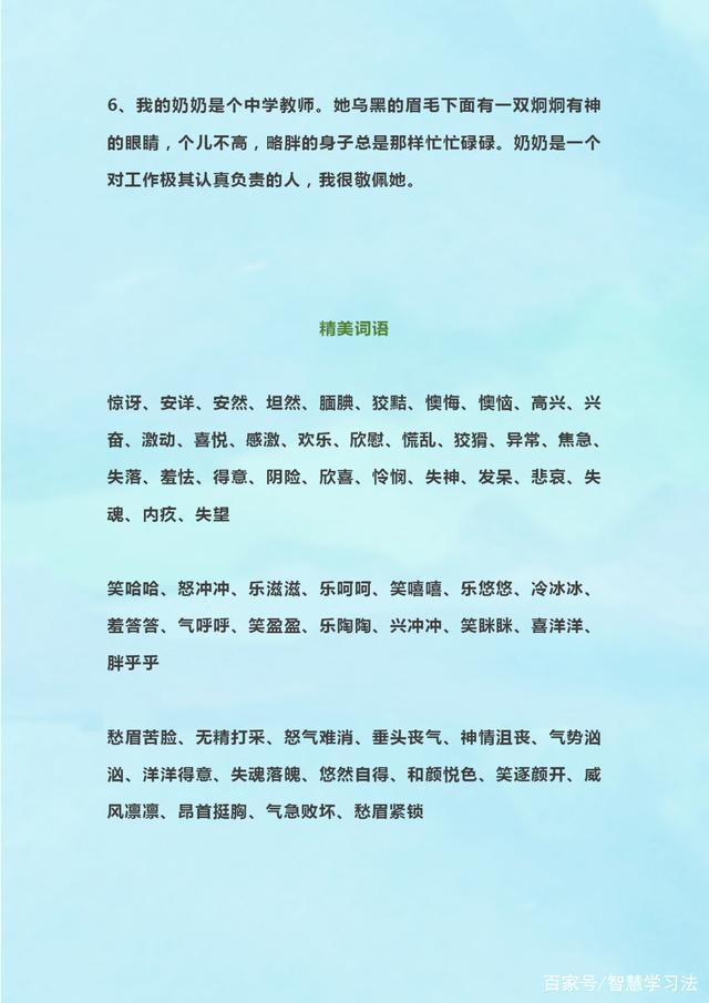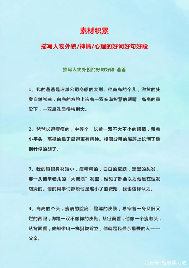 语文老师:描写人物外貌+神情+心理好词好段,运用到写作中,拿高分