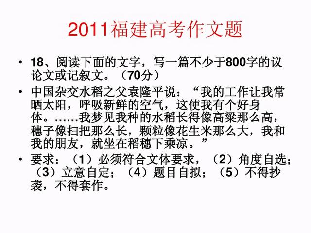 袁隆平的这两个梦,其实早在高考作文题目中体现,就在2011年的福建高考中,语文作文材料就是描述了袁隆平的禾下乘凉梦,题目要求根据袁隆平的梦想写一段800字的记叙文或议论文。