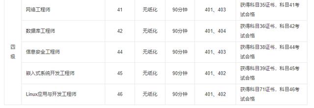科目:网络技术、数据库技术、信息安全技术、嵌入式系统开发技术、Linux应用与开发技术,共五个科目。于五个科目中选择一个参加考试并通过即可。其中,“Linux应用与开发技术”科目将于2021年3月首次开考。