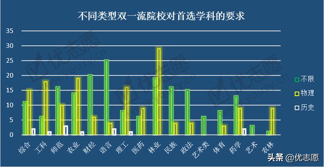 3、双一流院校总体倾向物理,再选科目适当放宽要求。