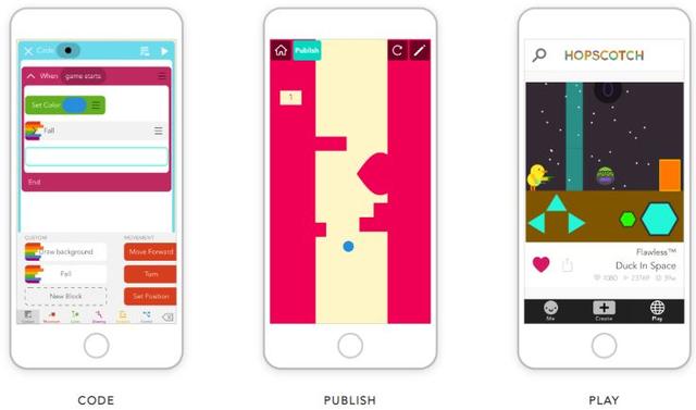 Hopscotch 中文名叫\\\”跳房子\\\”,也是一款兼容IOS和Android的免费APP。 孩子们编写自己控制字符的代码,使用应用程序代码块进行编程设计。 这款应用程序的基于字符的设计使它有别于其他应用程序, 孩子们也可以在他们的程序中添加文本。 \\\”跳房子\\\”是开放式的APP,这意味着孩子们不需要为角色编写代码来做特定的事情,而是可以自由想象和发挥,这是这个游戏与众不同的另一个方面,但同时也要求孩子更强的思维能力和创造能力。