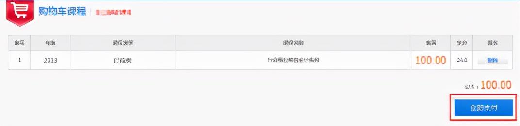 第四步:确认提交的课程无误后,点击“立即支付”进行支付
