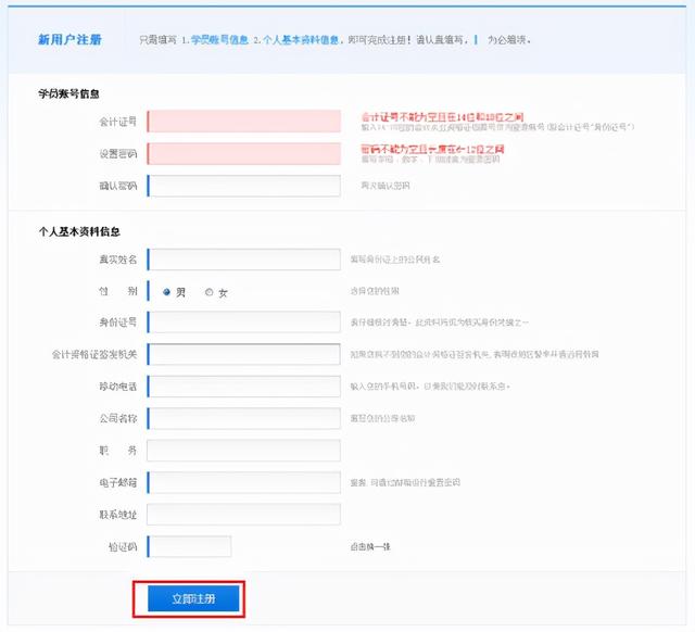第二步:认证填写注册信息,并点击“立刻注册” 按钮完成注册