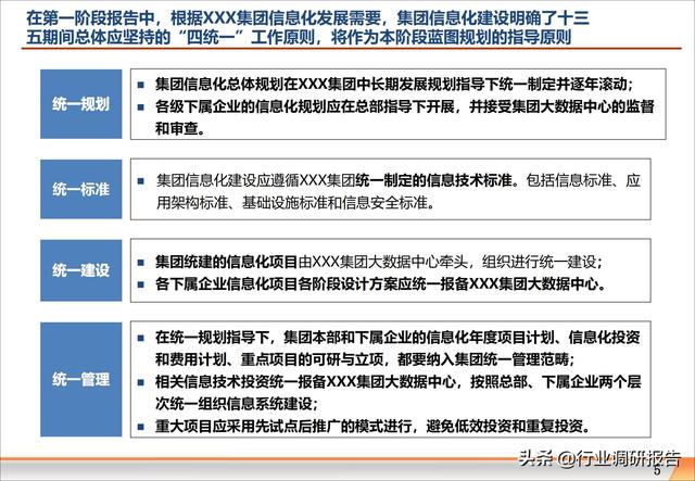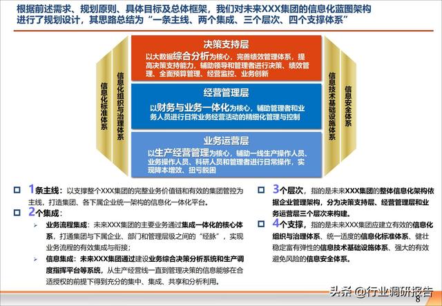 信息化方案(信息化系统建设方案) 这是一份某大型集团公司的最新信息化规划方案,非常全面、专业、系统! 方案共计206页,值得参考、借鉴、学习。 大纲目录: 第二阶段工作概述 应用系统架构规划 数据架构规划 IT基础设施与信息安全架构规划 信息化组织与管控架构规划 方案领取方式见文末 该份方案共计206页 我们已经为您整理成电子文档 领取方式 ↓↓↓↓↓↓
