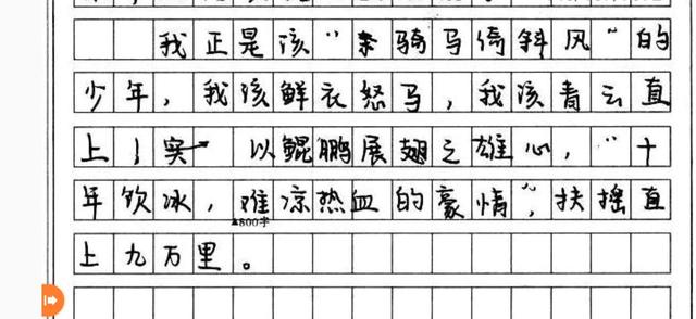 结尾:我正是该“骑马倚斜风”的少年,我该鲜衣怒马,我该青云直上,以鲲鹏展翅之雄心,“十年饮冰,难凉热血”的豪情,“扶摇直上九万里”。