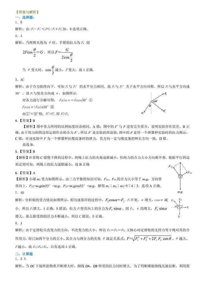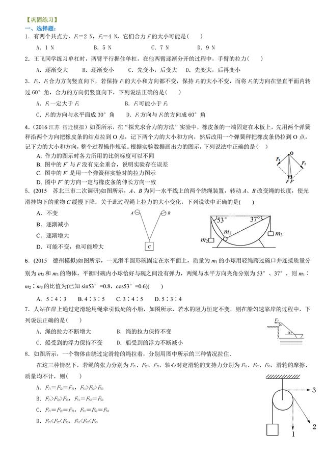 3.知道共点力,知道平行四边形定则只适用于共点力