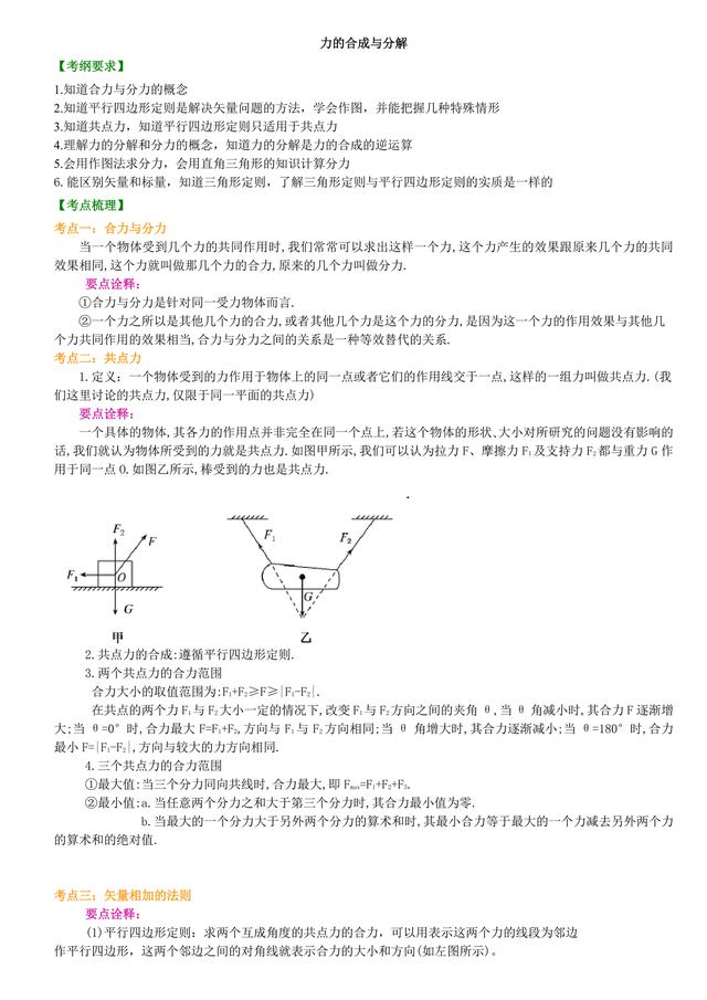 4.理解力的分解和分力的概念,知道力的分解是力的合成的逆运算