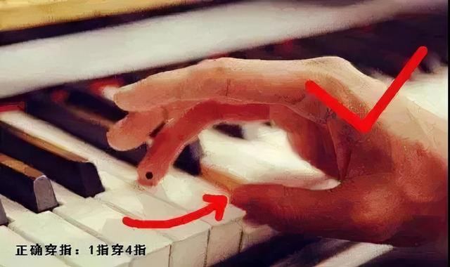 要注意只能用1指去穿,而且只能穿2,3,4指,不能穿5指,如果2、3、4指在白键上,那么1指在穿指后不可以落到黑键上。