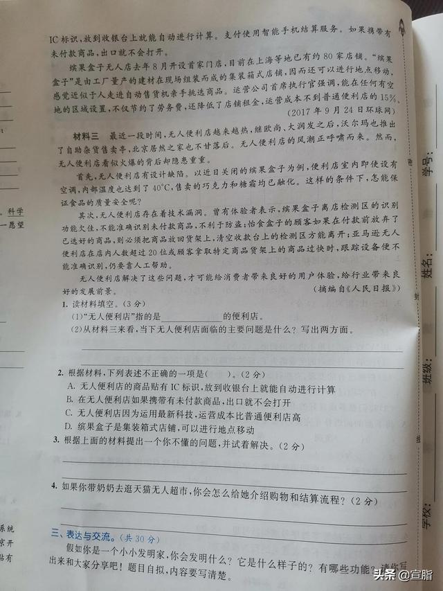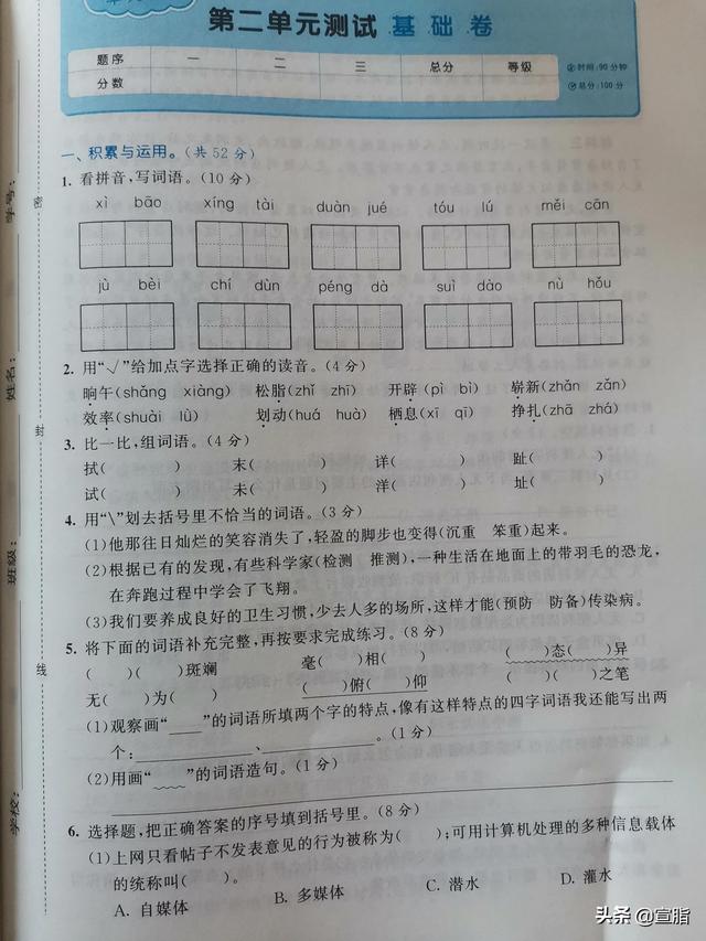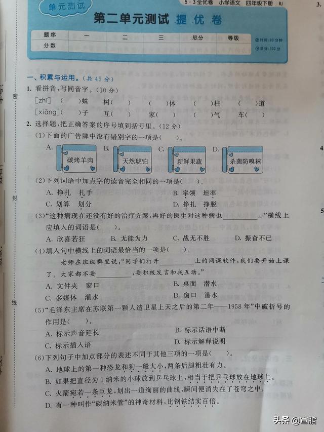四年级下册语文第二单元试卷(四年级下册语文第二单元试卷答案苏教版)