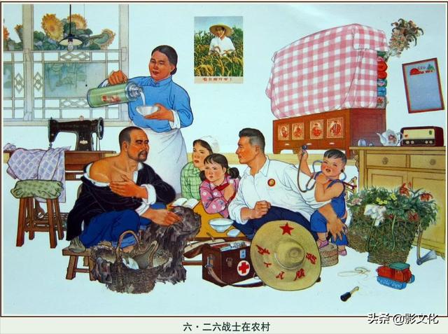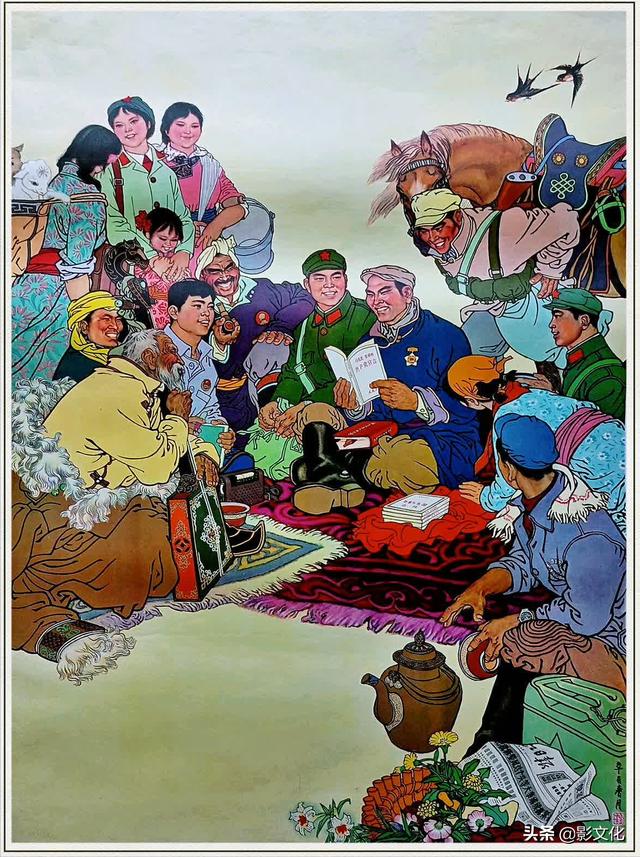 1973年黑龙江人民出版社出版,刘棣 ,张冠哲创作。画面是解放军战士和边疆的牧民在一起。将军战士为他们带来了理论书籍。