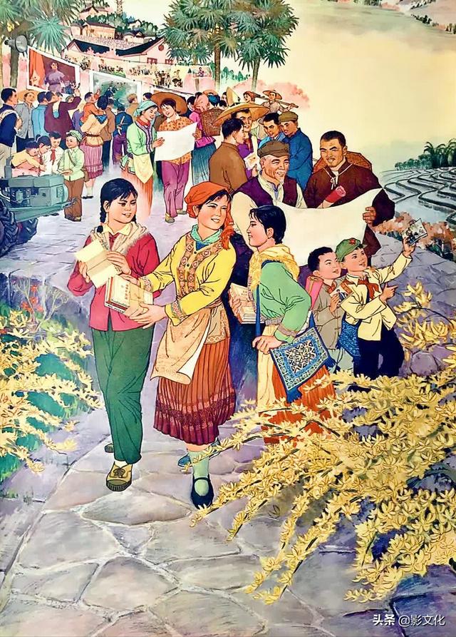 1975年广西人民出版社出版,龙山农创作。画面是新书下乡,受到了社员们的热烈欢迎。