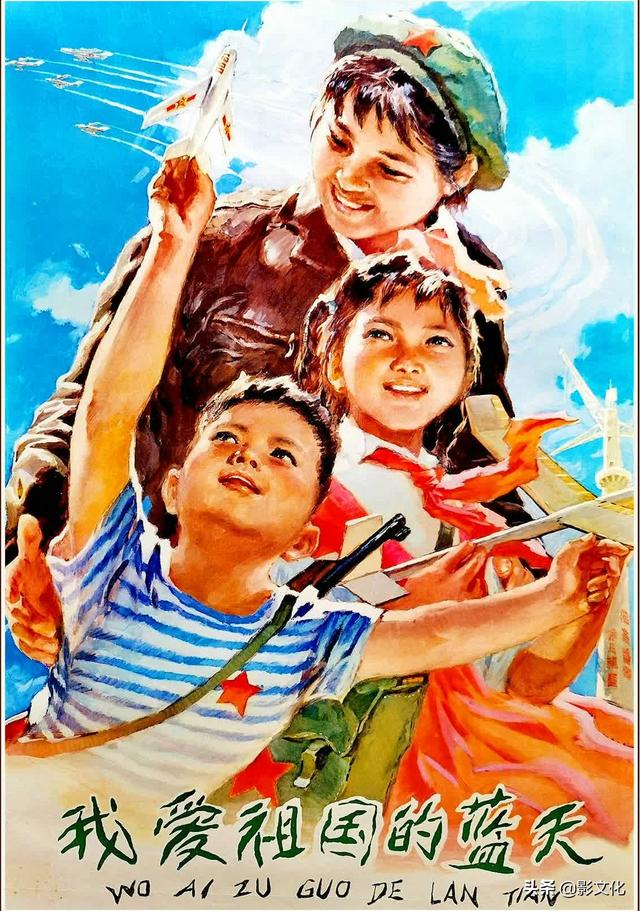 1976年人民体育出版社出版,李醒滔,梁照堂创作。画面是一名女空军和两名小朋友在一起,他们拿着飞机模型做出飞向蓝天的动作,孩子的梦想是当一名飞行员。